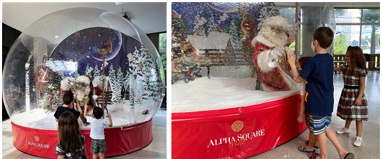 Além da exposição, que será um espetáculo dentro da programação Natal Nevado do Alpha Square Mall, aos finais de semana o público encontra com o Papai Noel e sua equipe dentro de um grande Globo de Neve -com quatro metros de diâmetro- e neve artificial. Assim, as famílias podem conversar, as crianças fazerem seus pedidos, diretamente para o bom velhinho, porém com distanciamento seguro para todos.