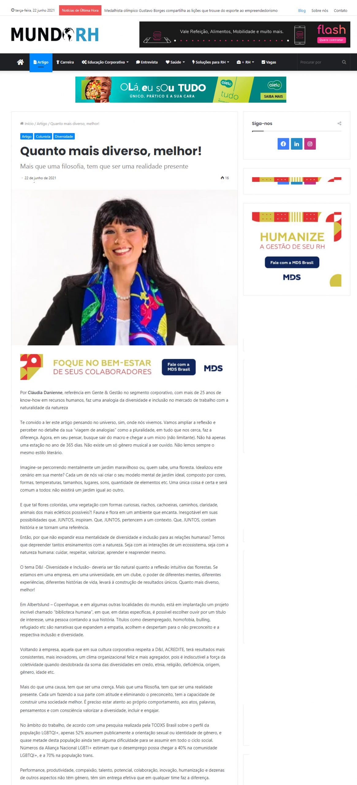Quanto mais diverso, melhor! Cláudia Danienne, referência em Gente [...]