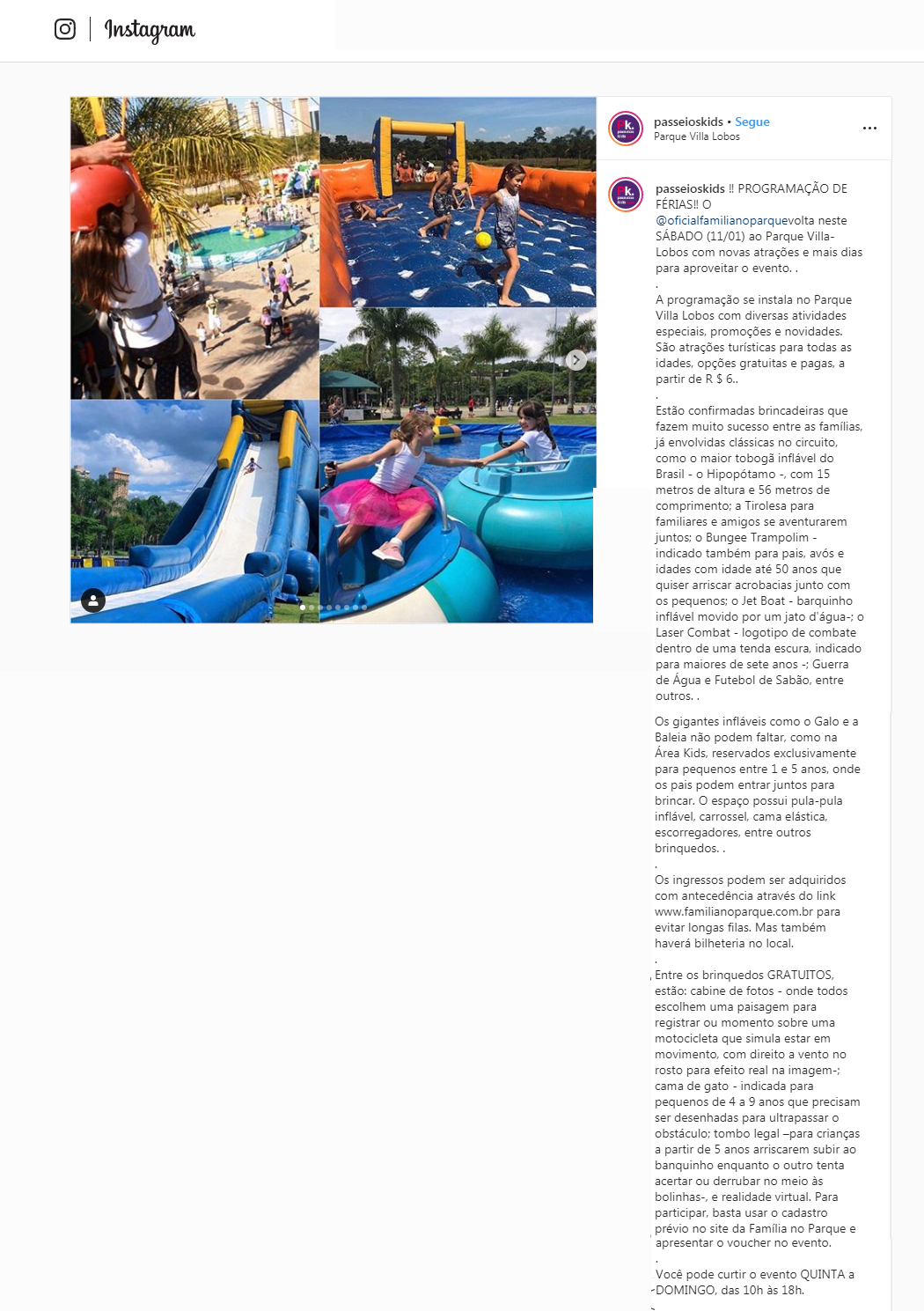 Instagram Passeios Kids Galeria Instagram Passeios Kids Clientes, Clipping, Família no Parque Instagram Passeios Kids2020-01-07T16:31:28-03:00|