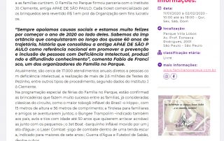 Féria Janeiro – Data AlteradaFamília no Parque especial de férias começa no sábado no [...]2020-01-06T17:23:17-03:00|
