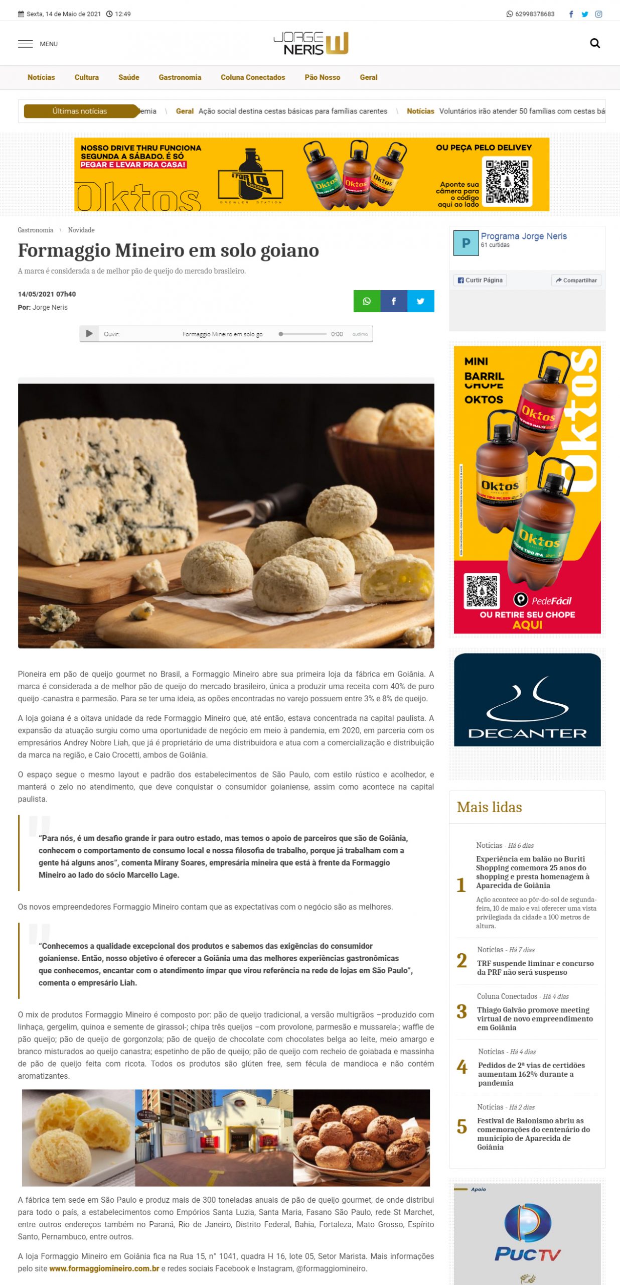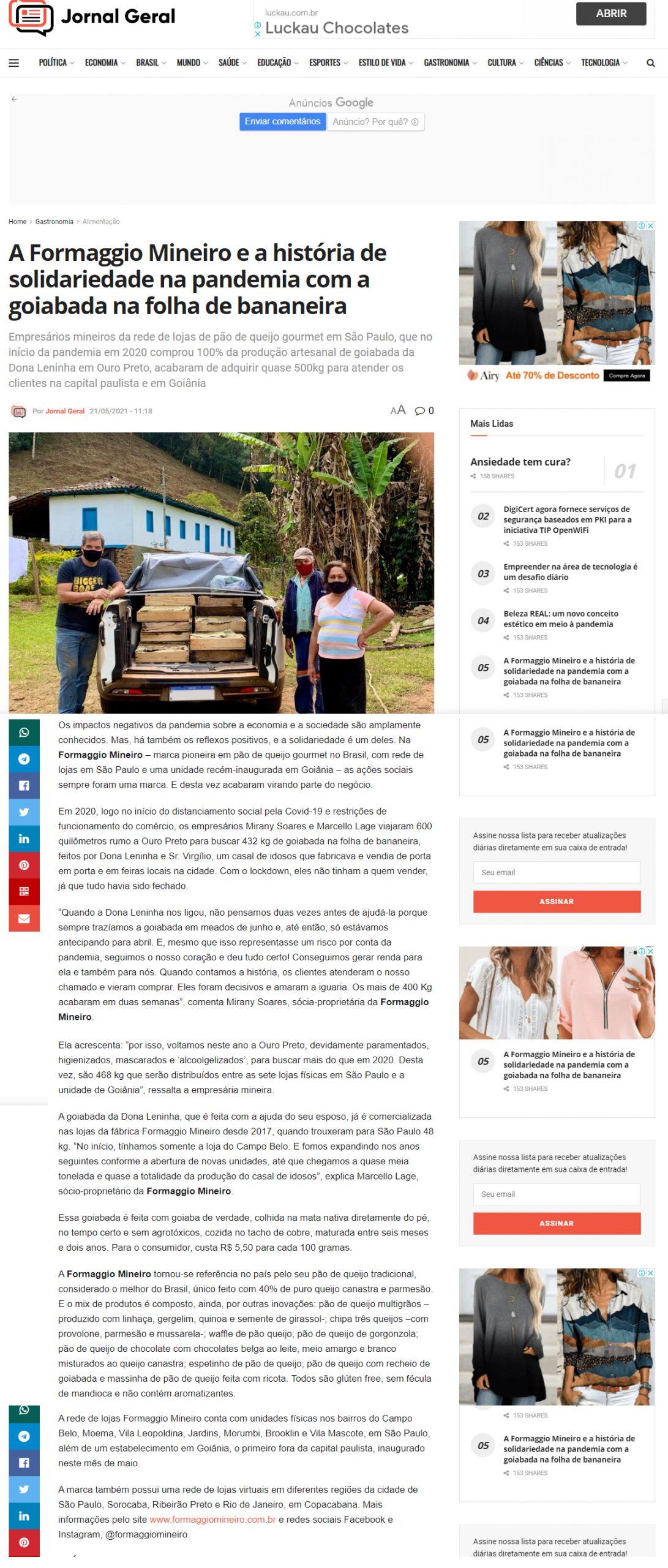 Jornal Geral online Galeria Jornal Geral online Clientes, Clipping, Formaggio Mineiro Jornal Geral online2021-05-21T14:31:00-03:00|