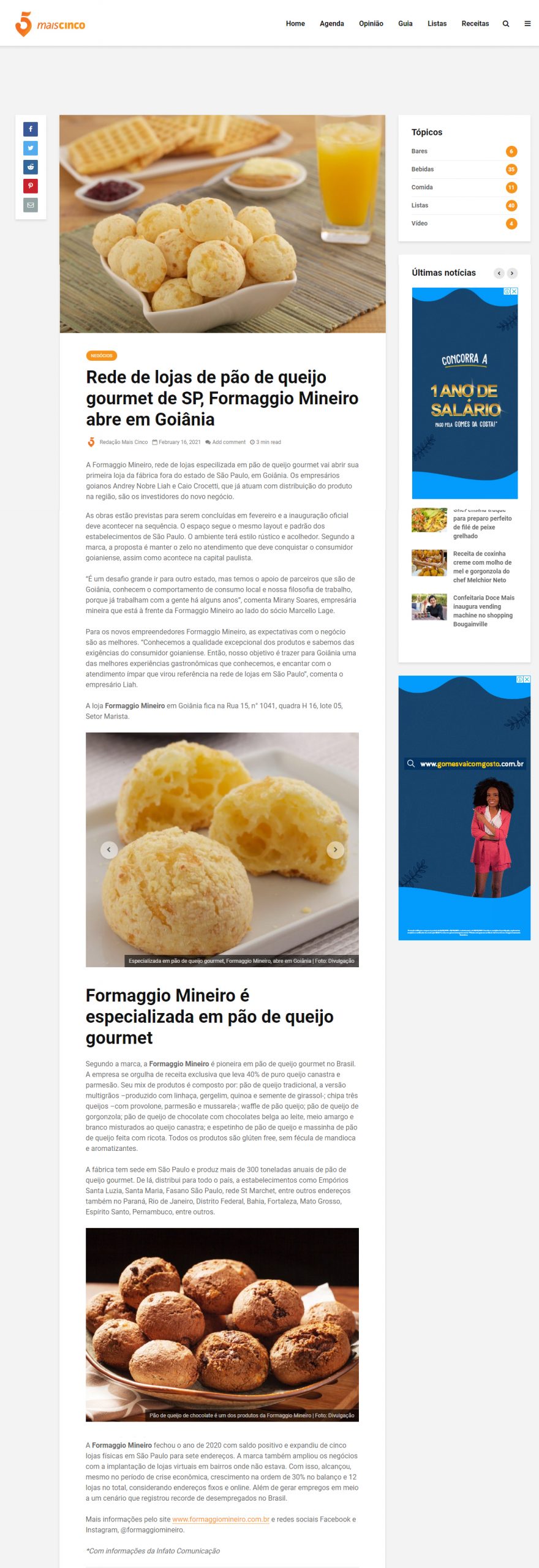 Portal Mais Cinco Galeria Portal Mais Cinco Clientes, Clipping, Formaggio Mineiro Portal Mais Cinco2021-02-16T15:44:33-03:00|
