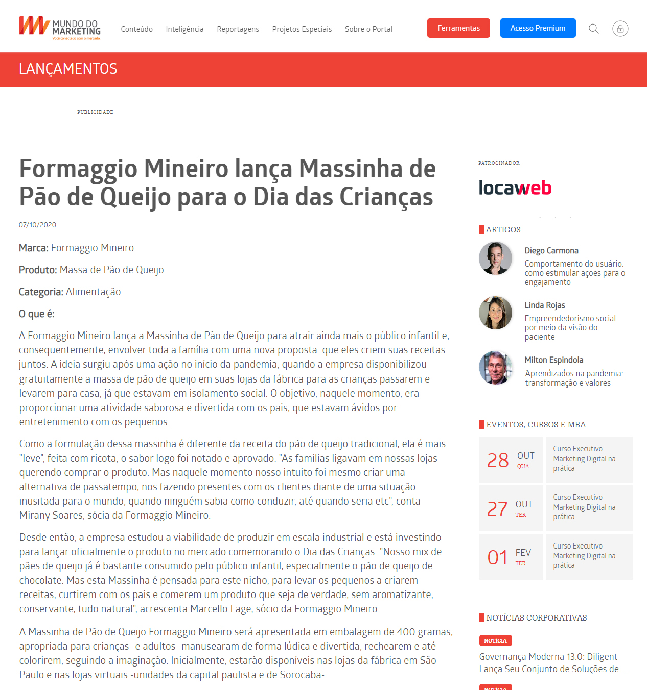 Portal Mundo do Marketing Galeria Portal Mundo do Marketing Clientes, Clipping, Formaggio Mineiro Portal Mundo do Marketing2020-10-07T13:55:21-03:00|