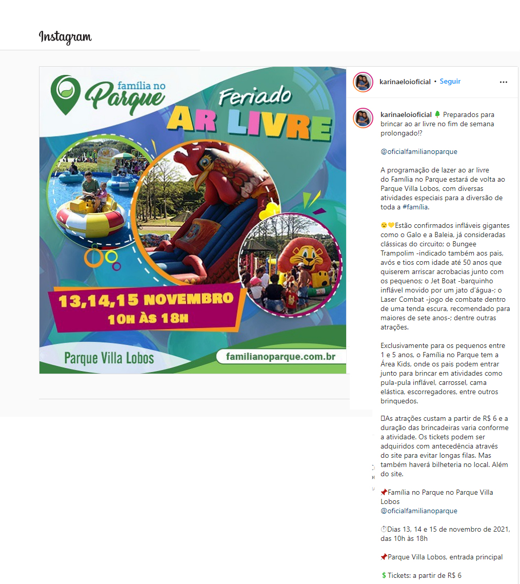 Instagram Karina Eloi Galeria Instagram Karina Eloi Clientes, Clipping, Família no Parque Instagram Karina Eloi2021-11-15T19:56:14-03:00|