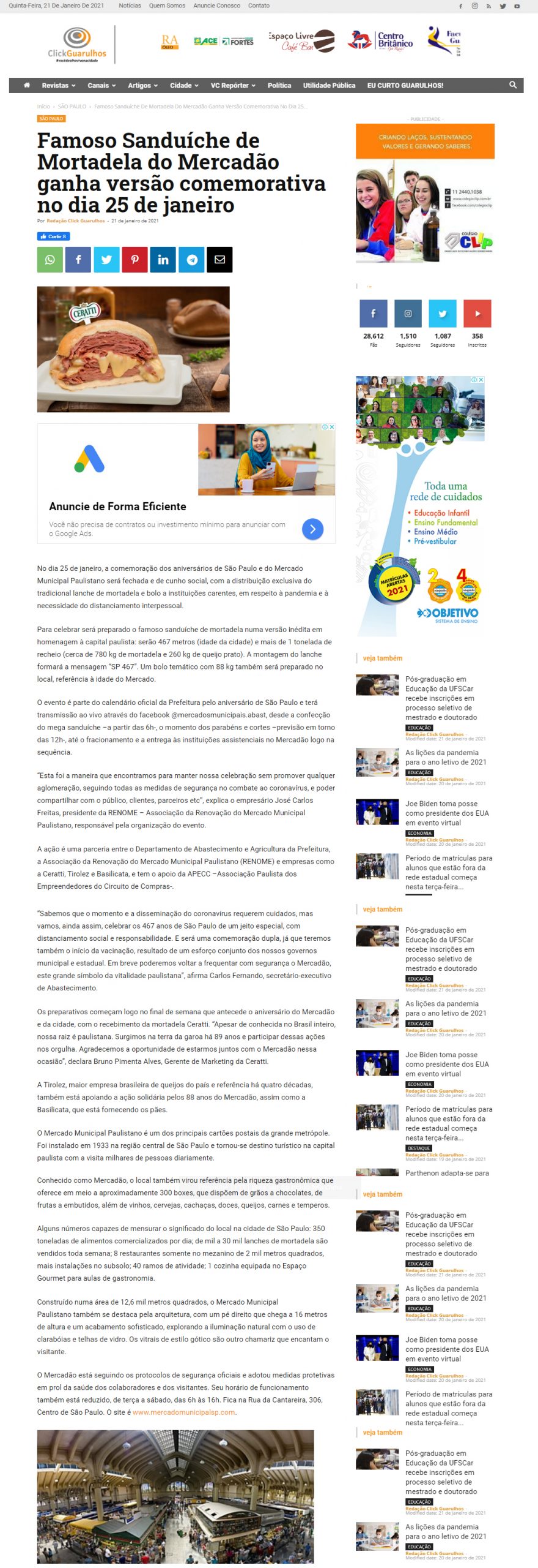 Portal Click Guarulhos Galeria Portal Click Guarulhos Clientes, Clipping, Renome (mercado municipal paulistano) Portal Click Guarulhos2021-01-28T16:10:44-03:00|