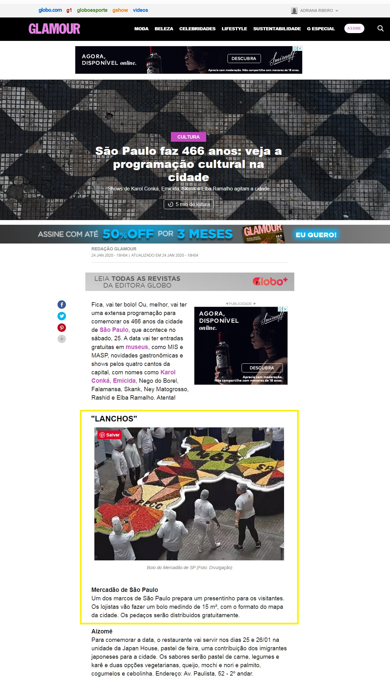 Revista Glamour online Galeria Revista Glamour online Clientes, Clipping, Renome (mercado municipal paulistano) Revista Glamour online2020-01-27T11:52:32-03:00|